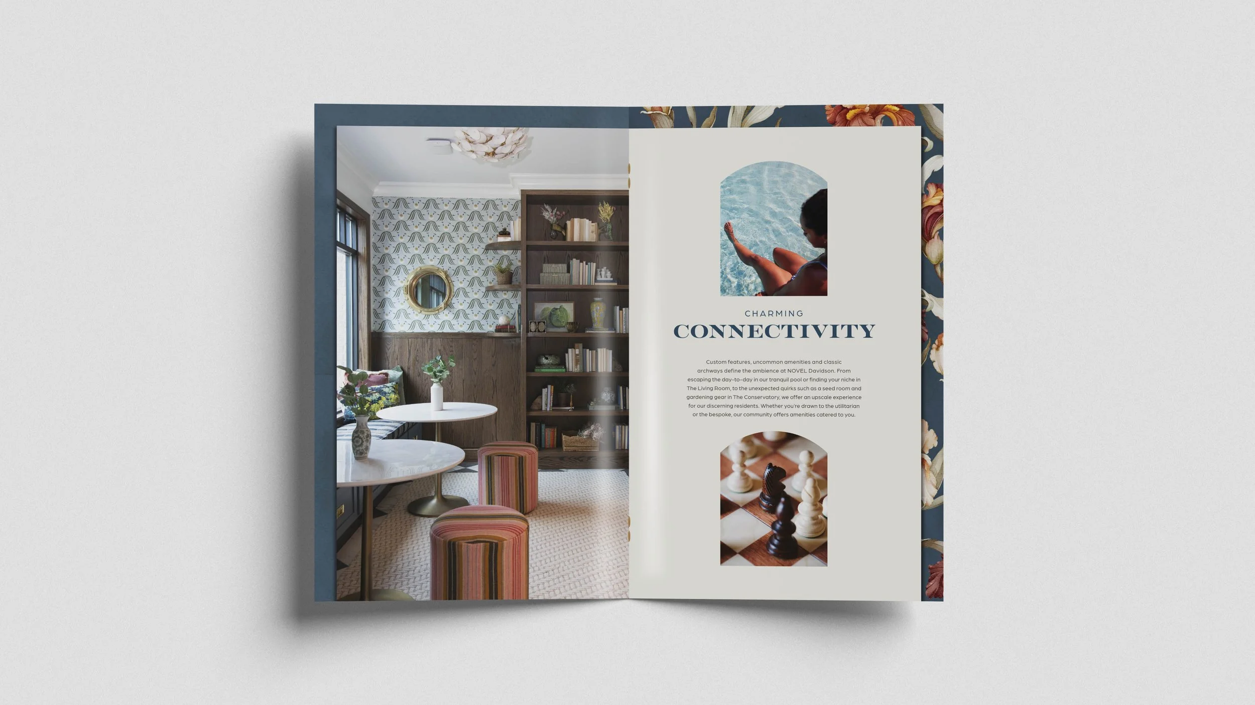 NOVEL Davidson presents a rare opportunity for those seeking the idyllic Main Street lifestyle of Davidson, NC. NOVEL Davidson is effortlessly authentic, walkable to picturesque streets dotted with bespoke stores. Beckoning with unassuming splendor and small-town charm, living here is lavishly local. I worked with a creative writer to develop the look/feel and messaging for a variety of marketing materials.